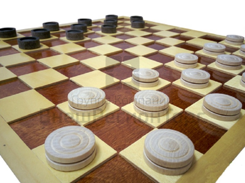 Шашки состоят из 100 клеток. В комплекте по 15 шашек белых и черных.