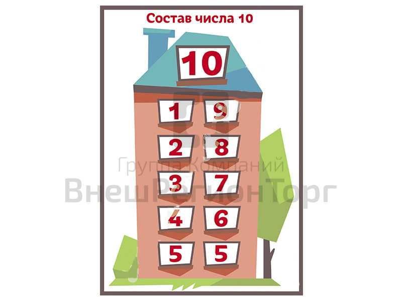 Плакат для курса Ментальная Арифметика Состав числа 10