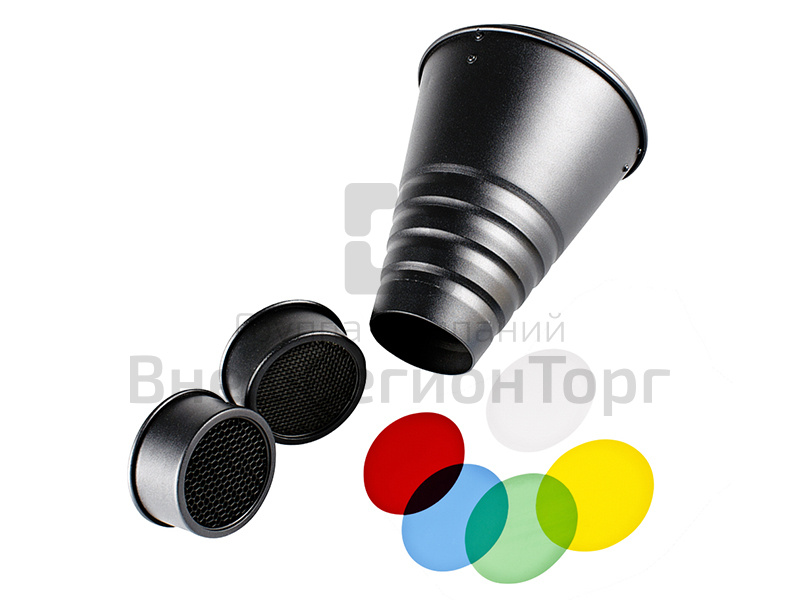 Позволяет получать узконаправленный луч света для создания светового или цветового акцента на объекте съемки или фоне и обеспечивает широкие творческие возможности в съемке.