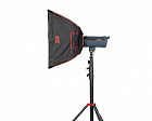 Закрытая конструкция софтбокса позволяет избежать нежелательных бликов и потерь светового потока. Мягкость светотеневого рисунка обусловлена наличием рассеивающей поверхности большой площади и специально подобранной геометрией боковых отражающих плоскостей.
