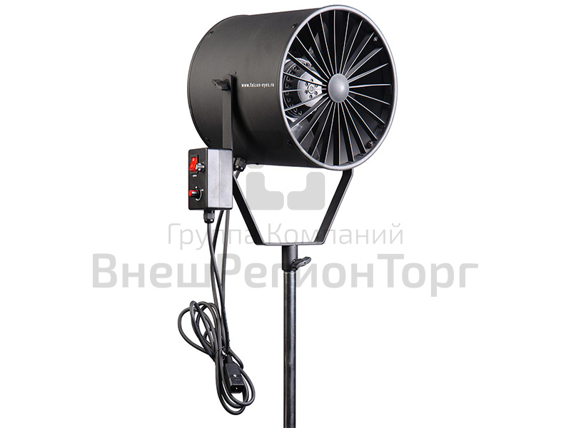Профессиональный мощный студийный вентилятор осевого (аксиального) типа, который позволит получить поток воздуха необходимой интенсивности. С помощью него в кадре можно имитировать как легкое дуновение морского бриза, так и настоящий ураган, регулятор скорости вращения лопастей плавно меняет скорость воздушного потока.