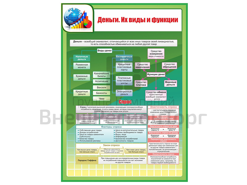 Подробное описание Стенд ДЕНЬГИ. ИХ ВИДЫ И ФУНКЦИИ. СПРОС 70х100 см