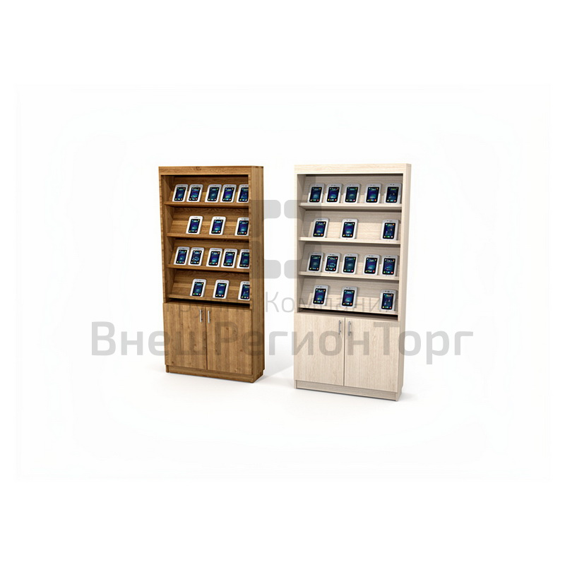 Подробное описание Стеллаж выставочный 4 накл.застекл.полки 900х292(308)х2090 закр.шкаф на замке
