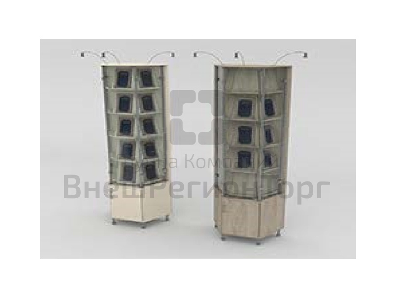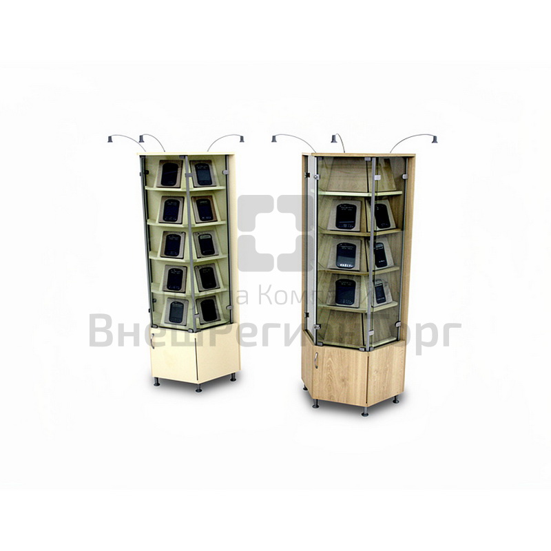 Витрина стекл.трапеция 5 накл.полок 900х415х2220 подсветка и замок